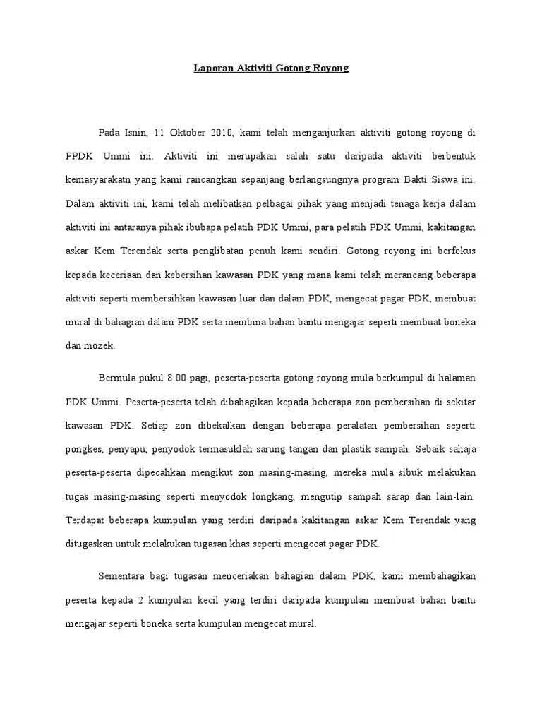 Contoh Karangan Pendek Gotong Royong Membersihkan Sungai - Kertas cadangan ruzina gotong royong perdana skbtp